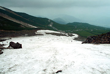 ちょうどVol.4(2001/06/23)に近い様子です。したがって、昨年より2週間程度雪解けが進んでいることが分かります。例年と比べてもやや早いと思われます。今後、曇りや小雨の日が続き、気温の上昇が少なければ雪解けのスピードは遅くなりますが、梅雨明けも近づいて来ていますのであまり期待できませんね。