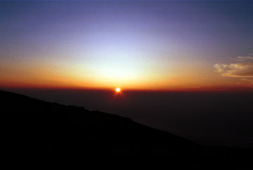 ◎ 一口メモ〜『早起きは三文の得』 ◎ date:2001/07/08 04:41 「天気が良ければ」という条件付ですが早起きすればご来光を拝むことができます。この写真は7月8日