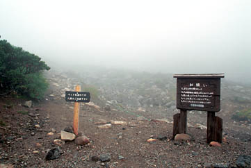 ご覧のとおり、ガスで全く視界がありません。左端に見える緑はウラジロナナカド。紅葉はまだまだのようです。