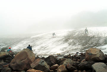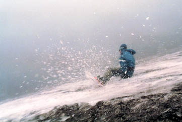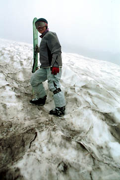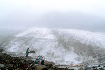 さて、雪渓の方ですが、ガスがひどく、キレイにご覧になれる映像があまりありません。気温は低くないのですが、雪質は結構固くなっています。