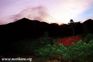 今日は1日中とまではいきませんが、なかなか良い天気で、夕暮れまで紅葉を見て歩くのがとても楽しい1日で、夕日にぼんやり映るウラジロナナカマドはきれいに紅葉が進んでいます。