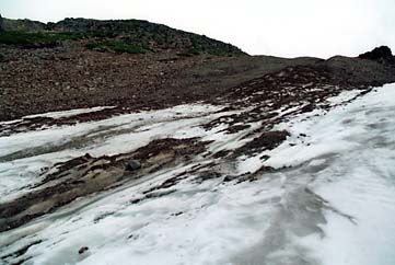 こちらは一番左端の土砂が流れ込んでいる部分です。雪融けで下の土砂が見えてきたのか、新たに土砂が流れ込んできたのか良くわかりませんが、先週よりも流れ込んできている土砂の量が増えています。