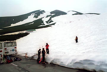 昨年は冷夏のため、夕立・落雷がほとんどありませんでしたので、それほど大きな問題とならなかったかもしれませんが、猛暑の年はお昼過ぎになると夕立・雷が当たり前のように大雪渓を訪れます。 マイカー規制以前の大雪渓付近は大半がスキーヤー・ボーダーばかりで、剣ヶ峰登山に向かう人は畳平までマイカーを走らせる傾向がありました。しかし、シャトルバス運行により、剣ヶ峰登山に向かう人も肩の小屋口バス停で乗降車するケースが増えてきています。