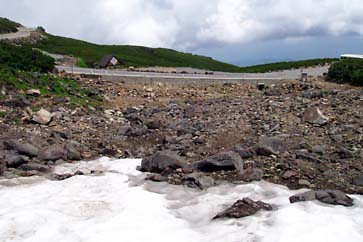 雪渓下部左側(モーグルコース付近) |