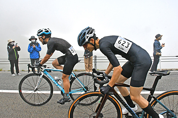 男子C優勝の世古 眞太郎選手 (右、1:05:58.823 334、総合8位) 男子B優勝の大石 拳誠選手 (左、1:05:58.904 205、総合9位) |