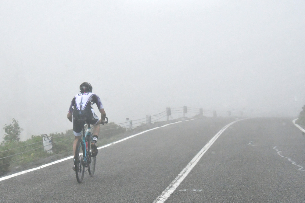 桔梗ヶ原付近から雨が降り始め、向かい風に見舞われます。