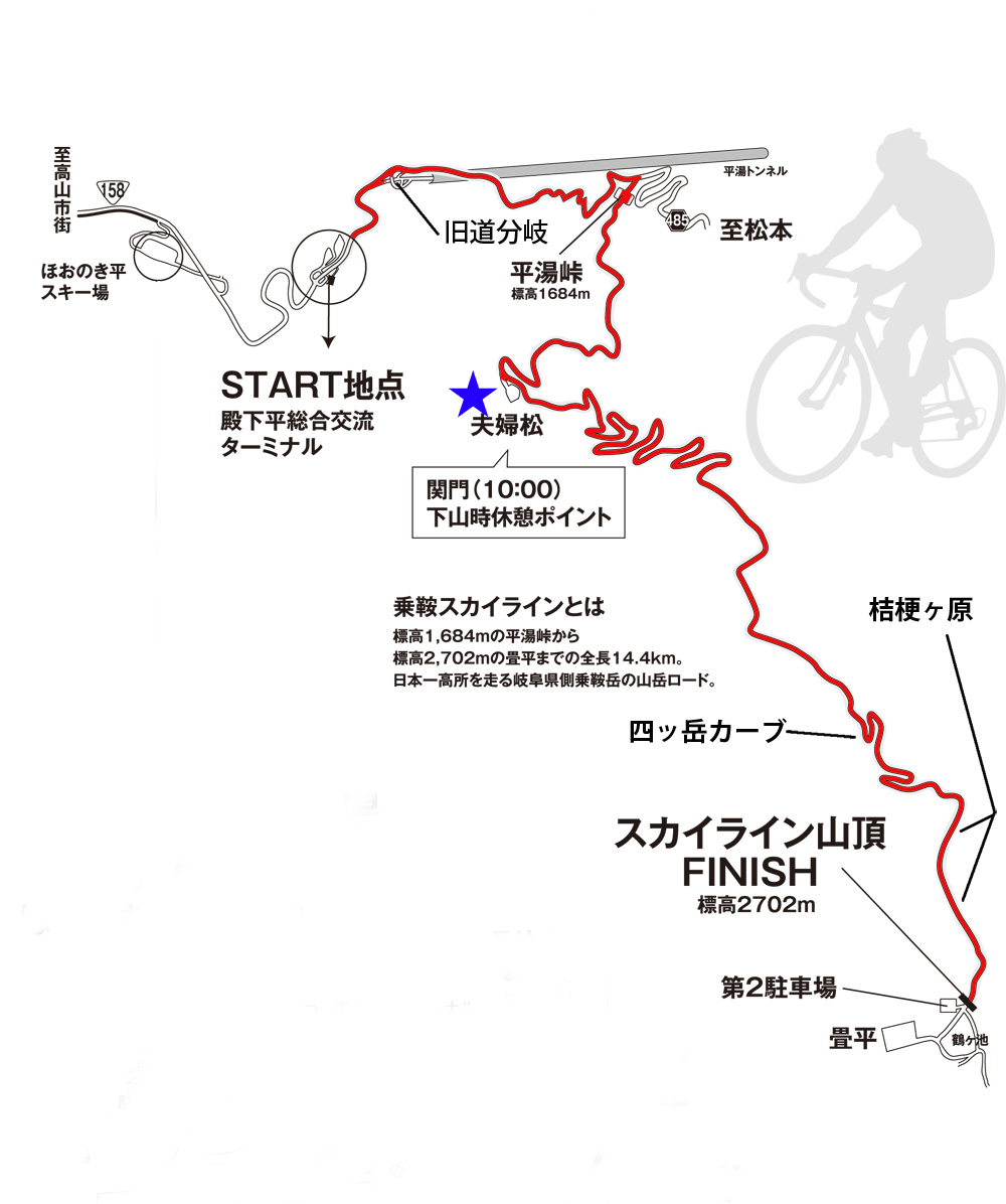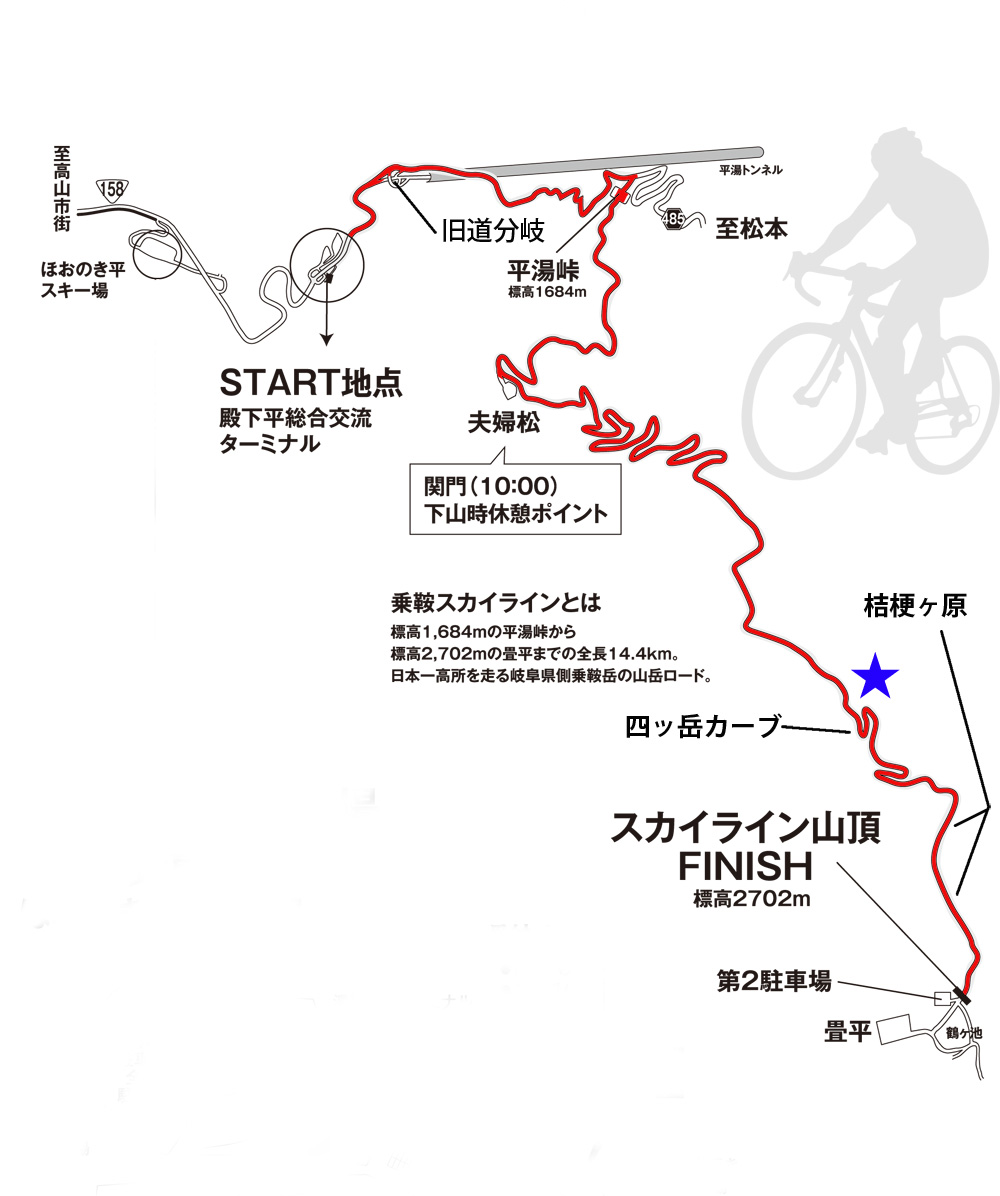同じ畳平付近をゴールとする長野県側の大会(乗鞍ヒルクライム)は、前半の勾配が緩く、後半がきつくなるコースレイアウトのため、レース後半までトップ争いが続く展開がみられます。この辺りは選手層の違いも影響していると思われます。