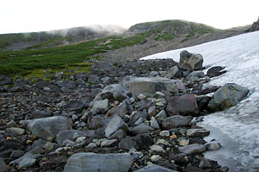 大雪渓が陰りはじめます。 |